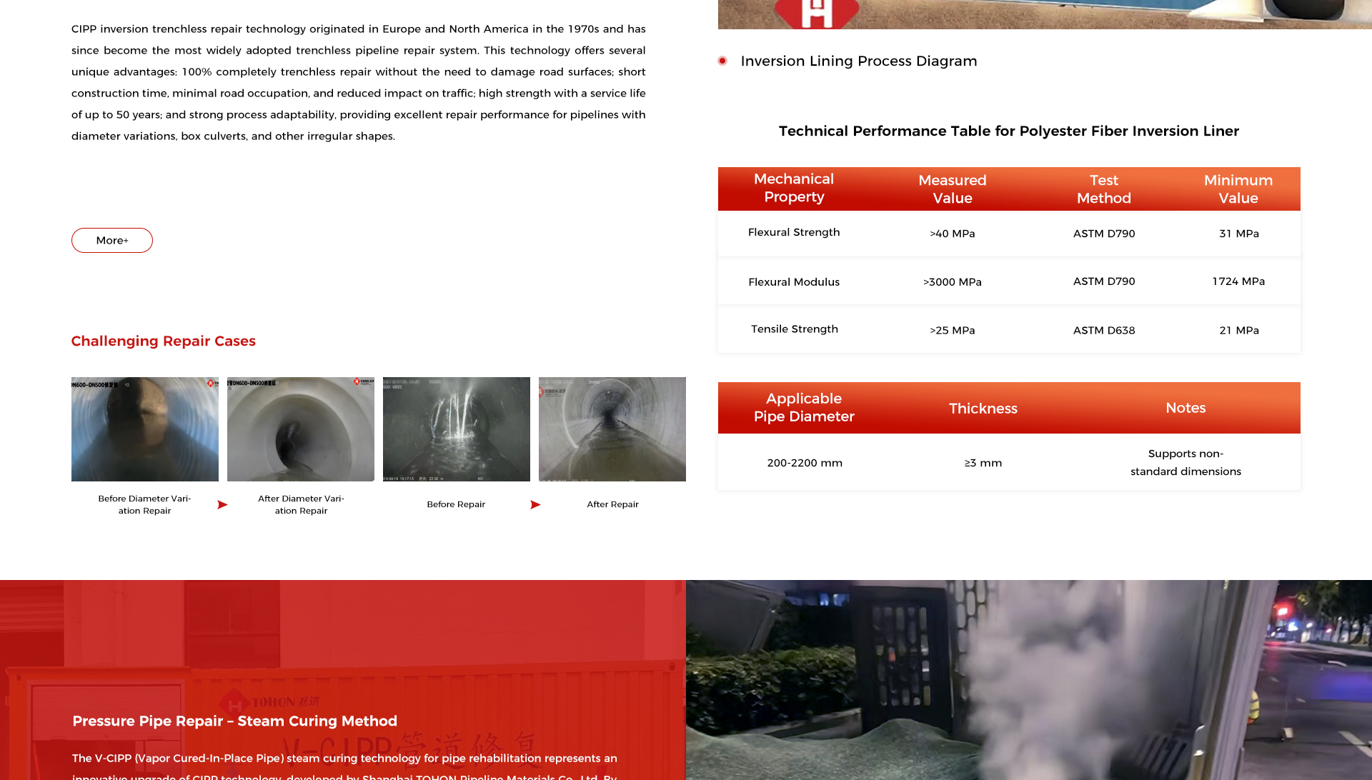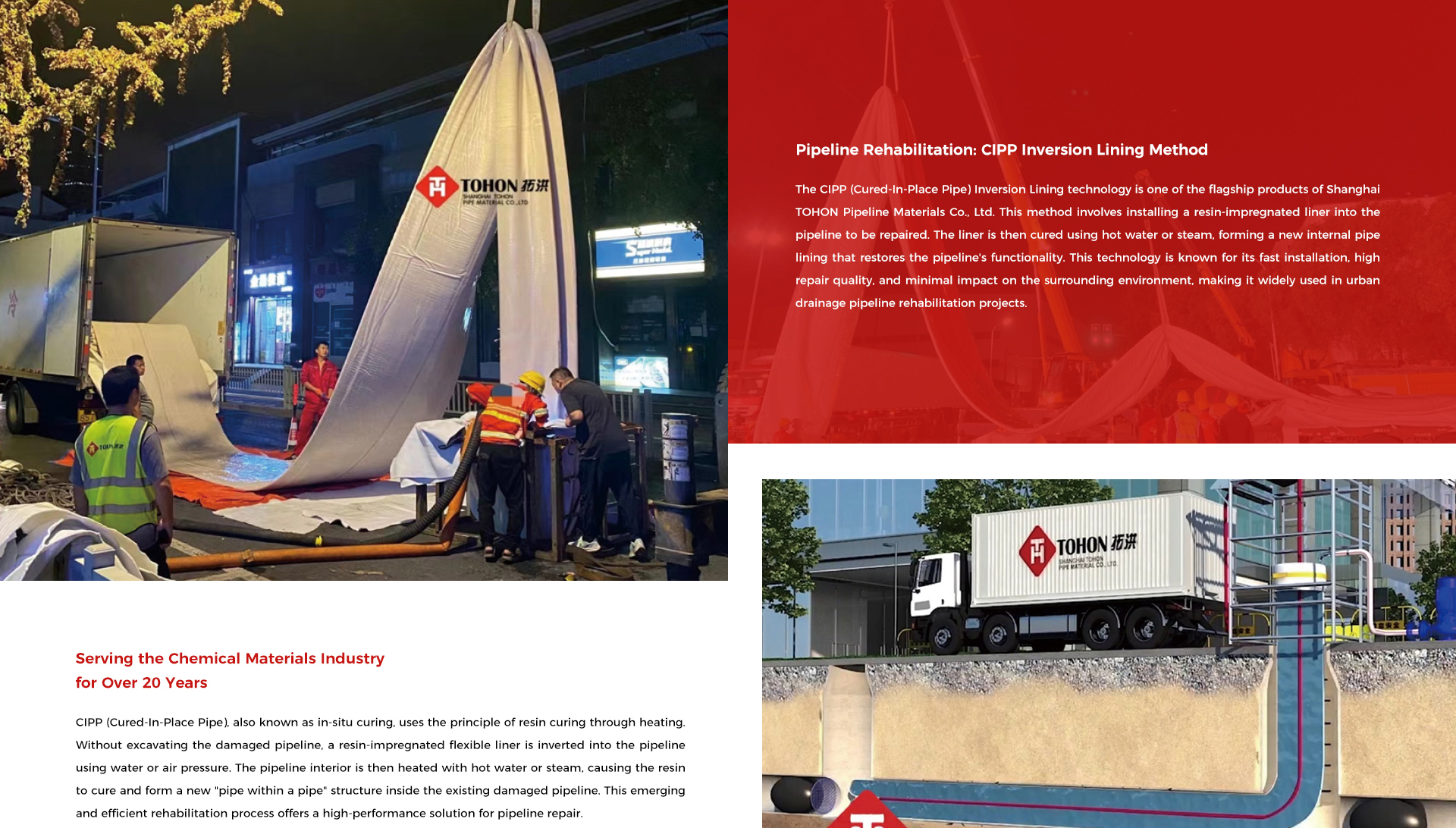 Shanghai TOHON Pipeline Materials Co., Ltd. (abbreviated as TOHON) is one of the earliest integrated companies in China dedicated to trenchless pipeline repair materials, equipment, and technical consulting services.